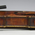 A violin with two-piece back, length of back excluding button 35.9cm, cased with a nickel mounted bow.