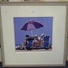 Brook - Figures under a Parasol on a Beach, oil on board, signed, 34.5cm x 34.5cm, within a stained wood frame, together with six watercolours by the same hand.