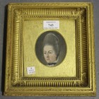 British School - Oval Miniature Portrait of a Lady identified as Sarah Molineux, late 18th/early 19th century oil on canvas laid on board, 8.5cm x 7cm, within a gilt composition frame.
