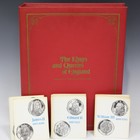 A set of forty-three silver 'The Kings and Queens of England' medals, contained in an album listing their place in history.