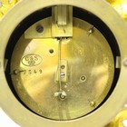 A 19th century French gilt metal mantel timepiece, the circular enamel dial with black Roman hour numerals, the backplate with stamped 'G & S' maker's mark, the case with chinoiserie building surmount, flanked by a figure of a gentleman resting on his rifle, the base cast and pierced with foliate scrolls, height 33.5cm, with pendulum and winding key.