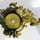 A late 19th century French ormolu cased cartel clock with eight day movement striking on a bell via an outside countwheel, the backplate with 'Japy Freres' stamped maker's mark, the circular enamel dial with blue Roman hour numerals and black Arabic outer minutes, the case of cast rococo scroll moulded form with flowers above a cupid to apron, height 45cm, with pendulum.