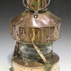 An Edwardian copper and brass mounted ship's lantern by Wm. Harvey & Co, Glasgow, bearing maker's plaque and fitted with swing handles, height 49cm.