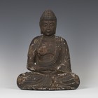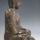 A Chinese carved and painted wood figure of Buddha, Ming style but probably late Qing dynasty, modelled seated in dhyanasana, height 37cm.