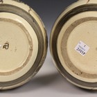 A pair of Japanese Satsuma earthenware vases, Meiji/Taisho period, of double gourd form, decorated with samurai and peonies within ruyi head outline panels against a scattered brocade ground, black painted marks to bases, height 30.5cm.