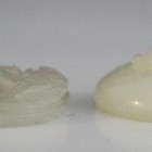 A Chinese white jade oval pendant, probably 20th century, one side carved in relief with a dragon and egret, the reverse with two characters framed by scrolls, length 5.2cm, together with another carved jade pendant in the form of two mushrooms and stems, length 5.5cm.