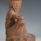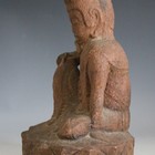 A South East Asian pottery deity, modelled seated on a lotus moulded oval base, height 32.5cm.