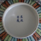 A Chinese doucai style porcelain bowl, mark of Kangxi but late 19th century, the exterior painted with a design of lotus and scrolling tendrils, the interior with an iron red dragon, underglaze blue pseudo four character mark to base, diameter 23cm (hairline cracks to rim), together with a Chinese blue and white bowl, late 19th century, painted with dragons, diameter 25.7cm (restored), and a blue and white shallow dish, diameter 23.5cm (restored).