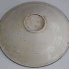 A Chinese Ding ware style bowl, 20th century of shallow circular form, the interior carved in low relief with a floral scroll design beneath a metal mounted rim, diameter 22cm.