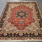 A Tabriz rug, Central Persia, late 20th century, the pink field with a flowerhead medallion, profusely supported by palmettes and leaves, within a midnight blue complimentary border, 206cm x 146cm.