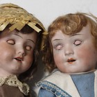 An Armand Marseille bisque head doll, impressed '390n 24 6/1 4/0', with brown wig, closing blue eyes, open mouth showing upper teeth and jointed composition body, height 28cm, clothed, together with an Armand Marseille bisque head 'Baby Betty' doll, impressed '3/0X', with brown wig, closing blue eyes, open mouth showing upper teeth and composition body, height 35cm, clothed.