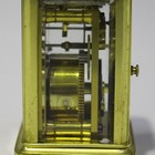 A late 19th century French gilt brass cased miniature carriage timepiece by Drocourt, the backplate with stamped maker's mark and numbered '12462', the enamel dial with black Roman hours, red outer Arabic minutes and inscribed 'Army & Navy C.S.L.', the corniche case with swing handle and bevelled glass panels, on bracket feet, height 9cm.