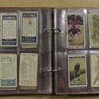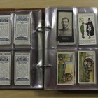 An album containing a 'type' collection of cigarette cards, including cards issued by Taddy, F. & J. Smith, Cope Bros, Ogdens, Hignett Bros, Edwards, Ringer & Bigg, Dukes and others.