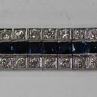 A sapphire and diamond bracelet, mounted with a row of calibre cut sapphires between two rows of circular cut diamonds within square shaped settings, on a snap clasp, length 18cm, total diamond weight approx 9.60ct, total sapphire weight approx 6.72ct, with a case.