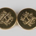 A pair of gold cufflinks, the circular fronts with engraved monogram detail, with torpedo backs, diameter of each front 2.1cm.