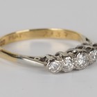 An 18ct gold, platinum and diamond five stone ring, mounted with a row of circular cut diamonds graduating in size to the centre stone, Birmingham 1959, ring size approx N, total diamond weight approx 0.30ct, with a case.