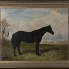 James Walsham Baldock - Study of a Black Horse in a Landscape, oil on canvas, signed and dated 1863, 59cm x 76.5cm, within a gilt composition frame.