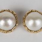 A pair of gold and mabé South Sea cultured pearl earclips, each mabé cultured pearl mounted within a cast surround, both detailed 'YVES' and '750', diameter 2cm.
