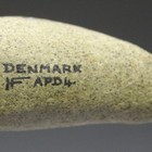 A Stone Age Neolithic pecked stone pierced boat shaped axe head, detailed in black ink with 'Denmark' and bearing Hugh Fawcett, Fred Clark and Robert Stonard collection details. Provenance: the property of a Surrey collector.