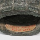 A Chinese bronze figure of Guanyin, Ming dynasty or earlier, modelled seated in dhyanasana on a double lotus throne, the back with incised inscription, height 13.3cm. Note: bearing old collector's label, inscribed 'Chinese pre-Ming W.R-S Coll'.
