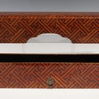 A Japanese Hakone inlaid rectangular document box and cover, Meiji period, with all-over keyfret decoration, length 39.5cm.