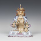 A Chinese polychrome enamelled porcelain figure of Buddha, 20th century, modelled seated in dhyanasana wearing headdress and beaded jewellery, unmarked, height 29cm.