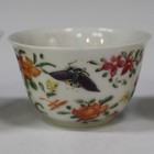 A Chinese famille rose enamelled porcelain bowl, mark of Yongzheng but modern, the exterior painted with a scene of boys, underglaze blue pseudo six character mark to base, diameter 13.5cm, together with a set of three Canton famille rose enamelled wine cups and a group of eight famille rose enamelled miniature figures.