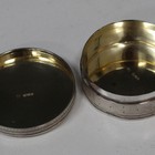 An Edwardian silver circular box and cover with engine turned decoration, London 1908 by Louis Dessoutter, diameter 6cm.
