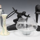 A Dartington Crystal London 2012 'Skyline' bowl, boxed, together with a group of decorative ceramics, including two Royal Doulton bone china London 2012 Olympic figures, a Halcyon Days 'Green Hellebores' vase and a Nadal model of a married couple.
