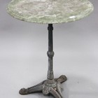 A Victorian cast iron pub table base with a circular marble top, height 72cm, diameter 60cm.