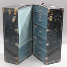 An early 20th century Oshkosh travelling wardrobe trunk with brass studwork borders, height 106cm, width 64cm, depth 56cm.