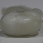 A Chinese white jade carving, probably 20th century, modelled in the form of a gourd, height 6cm, with wood stand.