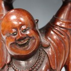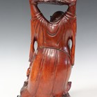 A Chinese carved hardwood Buddha table lamp base, early 20th century, modelled standing holding a lotus flower aloft, height 39cm.