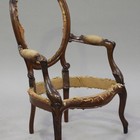 A 19th century rosewood framed salon chair with carved scroll decoration, on cabriole legs, width 63cm (un-upholstered).