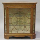 An Edwardian satinwood corner display cabinet with crossbanded borders, the moulded pediment above an astragal glazed door, flanked by glazed and canted corners, on bracket feet, height 110cm, width 105cm. Provenance: from the estate of the late John Young (1927-2017).
