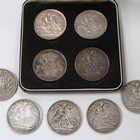 A group of nine Victoria crowns, comprising one 1844, the edge detailed 'Reg II VIII', two 1887, two 1889, one 1893, two 1897 and one 1899.