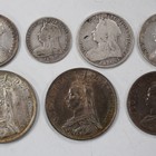 Two Victoria double florins, both 1887, a Victoria Godless florin 1849 and four other Victoria silver coins.