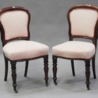 A set of six Victorian mahogany dining chairs with upholstered seats and backs, on turned legs, width 49cm, together with a George V mahogany dining table with single extra leaf, height 70cm, width 149cm, depth 105cm.