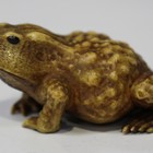 A Japanese carved staghorn okimono, Meiji period, finely modelled in the form of a toad, unsigned, length 6cm.