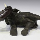 A Japanese brown patinated bronze figure group of an elephant under attack from two tigers, cast signature seal to underside, height 38.5cm.