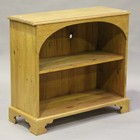 A 20th century pine two-tier open bookcase with an arched frieze, raised on shaped bracket feet, height 86cm, width 97cm, depth 38cm.