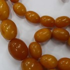 A single row necklace of sixty graduated oval mottled opaque butterscotch coloured amber beads, gross weight approx 84.2g, length 92cm, length of largest bead approx 2.5cm, length of smallest bead approx 1cm.