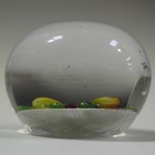 A St. Louis fruit paperweight, circa 1850, with apples, pears and cherries on a bed of leaves and spiralling latticino threads, diameter 6.3cm.