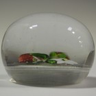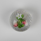 A St. Louis flowering strawberry paperweight, circa 1850, the central green stem supporting a white flower, leaves and two fruits on a spiralling white latticino ground, diameter 7cm (small chips to footrim).