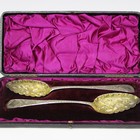 Two George III silver spoons, each later engraved and embossed with a bird perched amongst leaves, London 1806 by Thomas Wallis II and 1812 by Peter & William Bateman, cased.