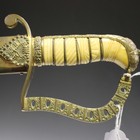 A Georgian 1796 pattern cavalry officer's sword with curved single-edged fullered blade, blued and gilt, decorated with foliate designs, trophies of arms and the armorial crest of the Empire of Brazil, blade length 83cm, single-piece gilt brass openwork guard and hilt, wire bound carved ivory grip, with foliate engraved brass scabbard.