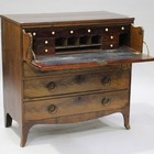 A George III mahogany secrétaire chest of four long drawers, on outswept bracket feet, height 102cm, width 105cm, depth 54cm (faults).