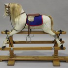 A mid-20th century white painted carved wooden rocking horse with blonde mane and wooden base, height 94cm, length 111cm.