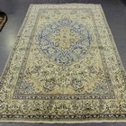 A Nain carpet, Central Persia, mid-20th century, the ivory field with a foliate medallion within a blue reserve, all supported by scrolling vines and palmettes, within a complimentary border, 298cm x 155cm.