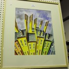 John Ormsby - Terraced Houses, watercolour, signed and dated '14, 49cm x 39.5cm, within a softwood frame.